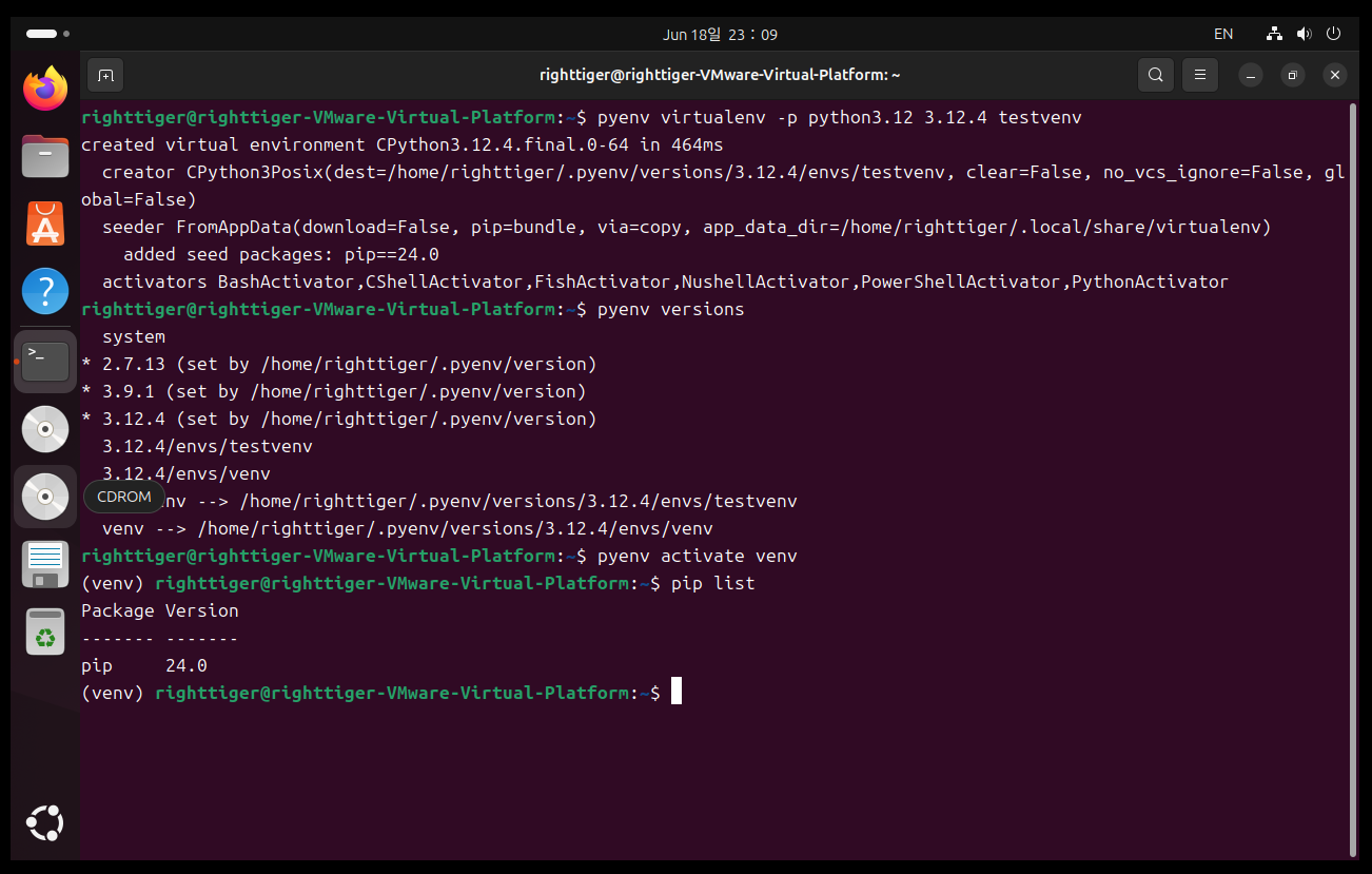 pyenv activate 가상환경명이라는 명령어를 통해 바로 접근가능(가상환경 명칭은 같은 이름을 2번 이상 사용할 수 없음.)