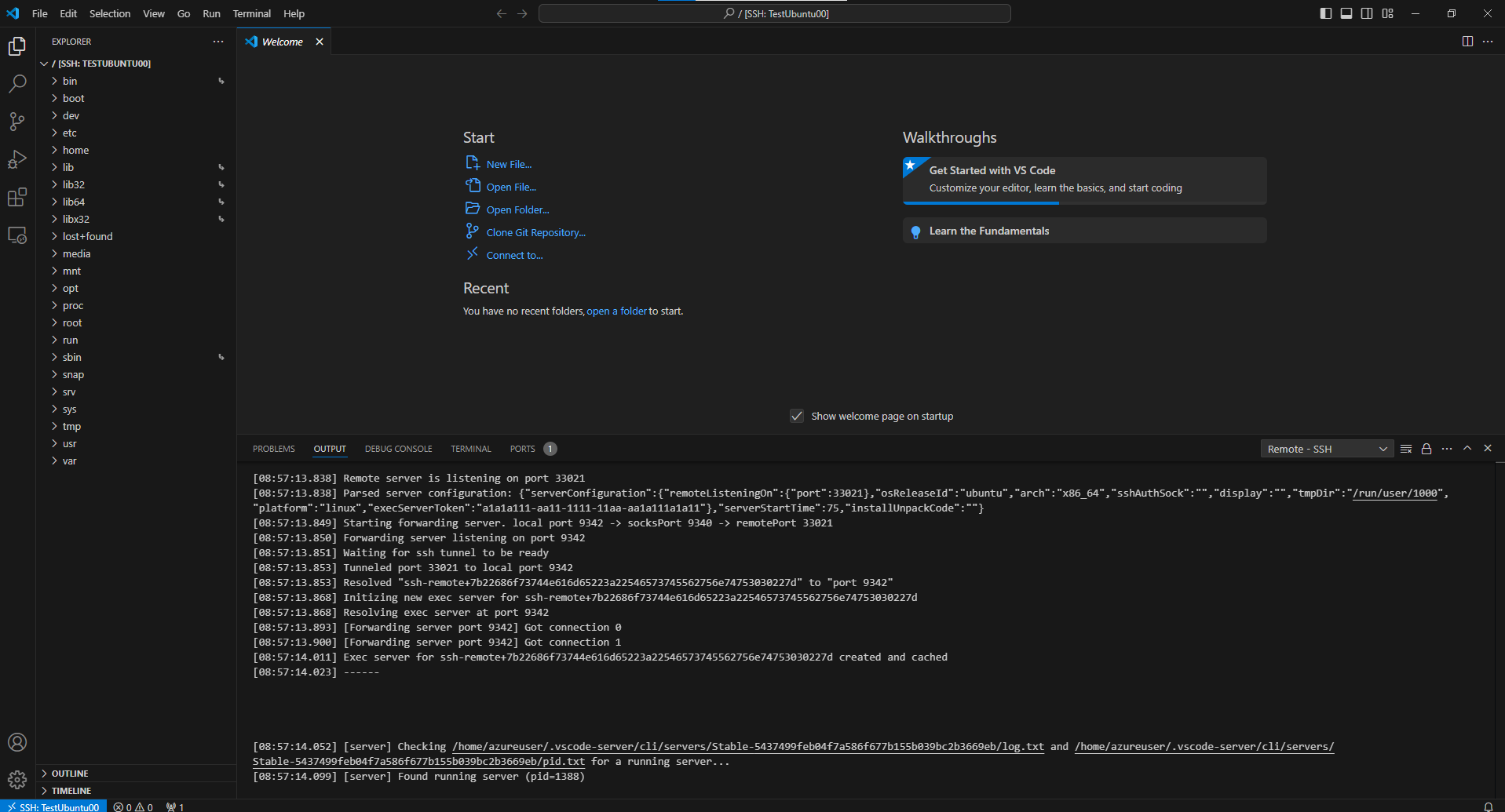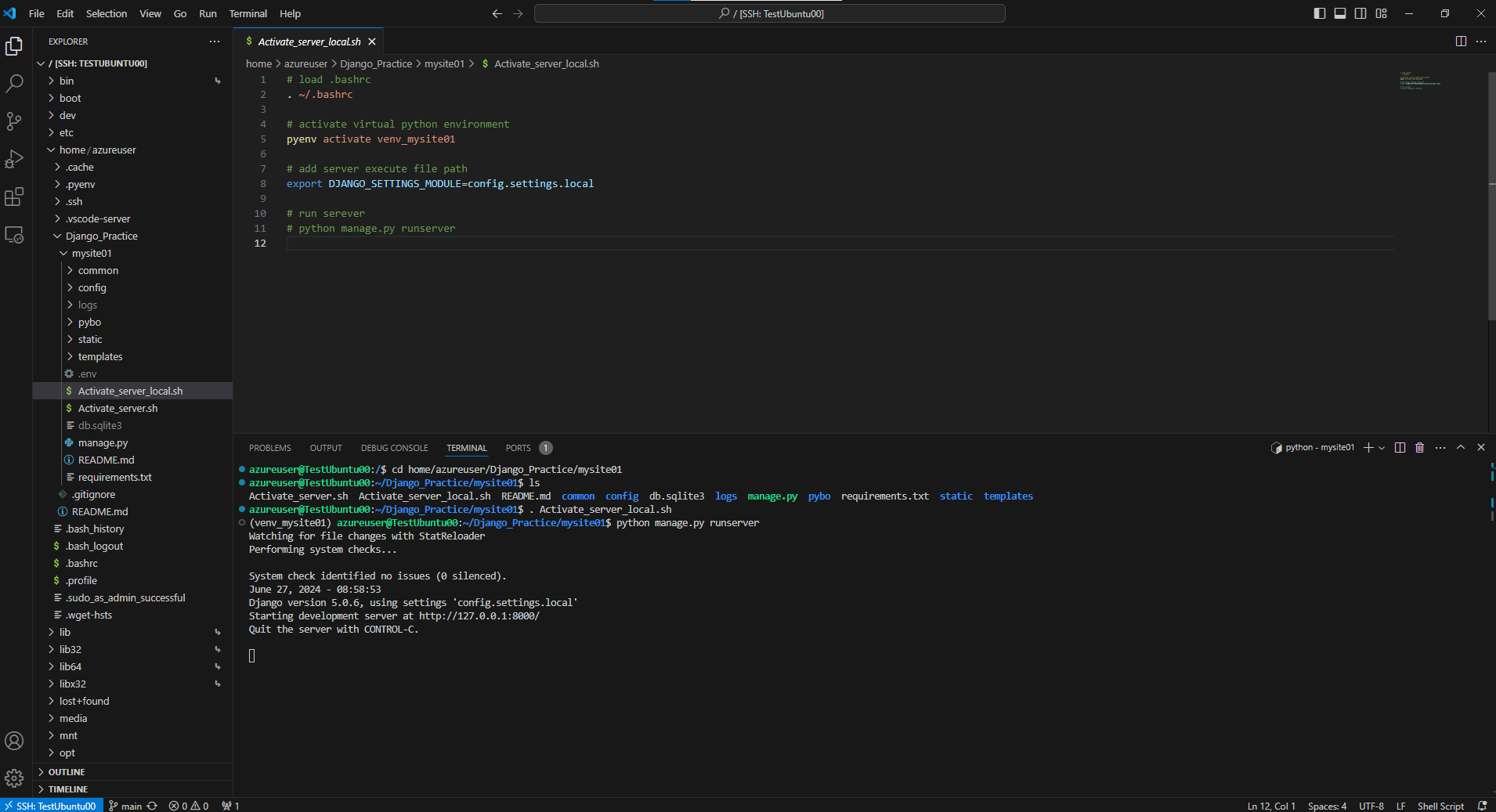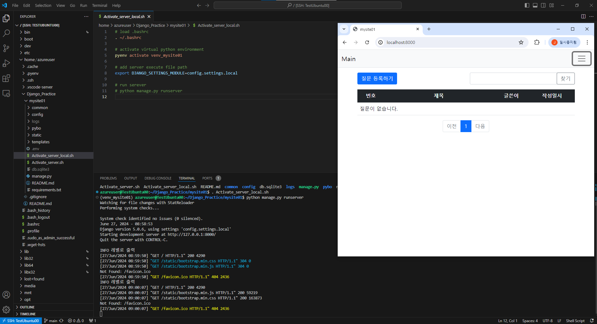 4. 접속이 정상적으로 완료되었다면 로컬 서버에서 작업하듯이 코드 수정 및 테스트 환경 실행등의 작업들이 정상적으로 되는지 확인합니다.