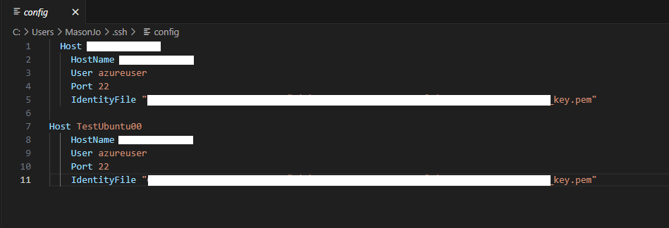 3. config 파일에 접속을 하려는 VM 관련 정보를 입력 및 저장하고 Ctrl+Shift+P를 눌러 명령 팔레트를 연 후 Remote-SSH: Connect to Host... 를 선택한 후 저장한 Host이름을 선택하여 접속을 진행합니다.