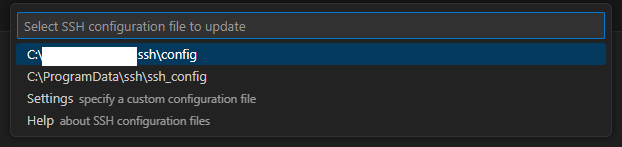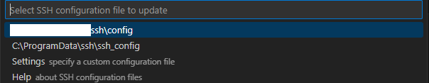 2. Ctrl+Shift+P를 눌러 명령 팔레트를 열고 Remote-SSH: Open SSH Configuration File...를 선택 후 config 파일을 선택합니다.