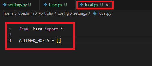 export DJANGO_SETTINGS_MODULE=config.settings.local