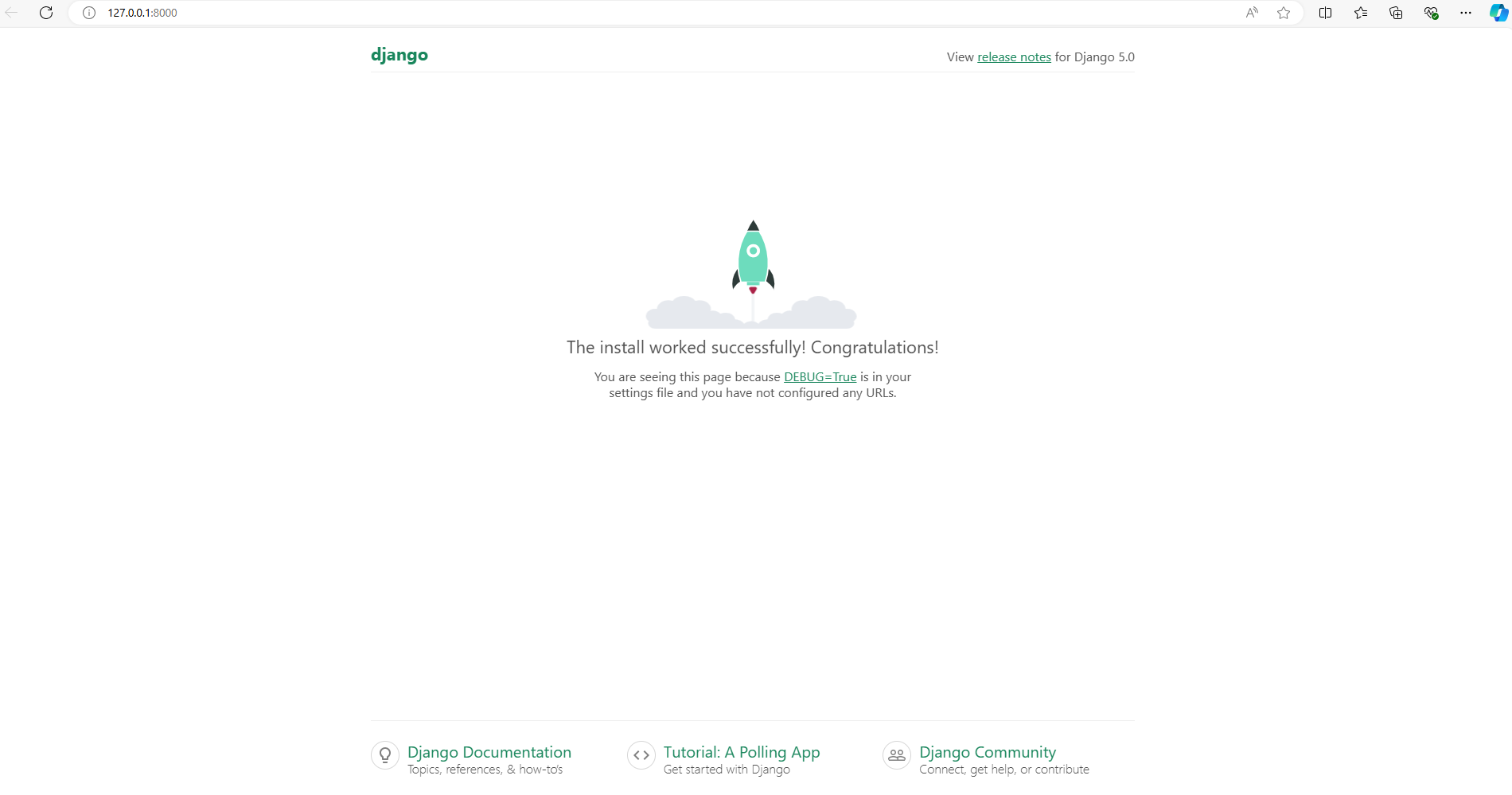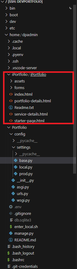 프로젝트를 Django로 개발 및 배포하기 위해서는 신규 Django 프로젝트를 생성해주어야 하기에 개발 서버로 만든 Ubuntu서버를 VS Code를 기반으로 ssh를 통해 접속한 후 아래의 명령어를 활용하여 Django 신규 프로젝트를 생성해주었습니다. 프로젝트가 생성된 것을 확인한 후에는 정상적으로 생성되었는지를 확인하기 위해 로컬환경에서 해당 프로젝트를 실행 시켜 확인하였고, 이상없이 작동하는 것을 확인했습니다.