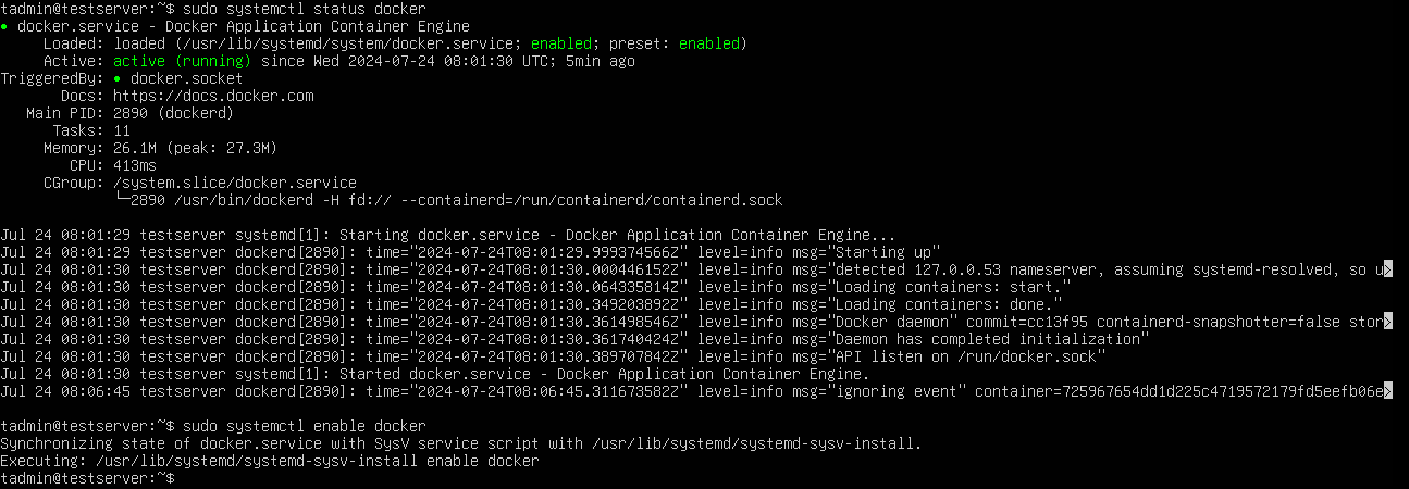 # docker 서비스를 시스템 부팅 시 자동 시작으로 설정