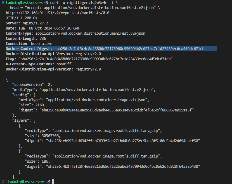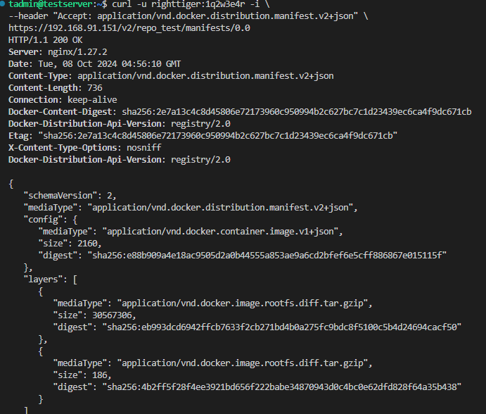 curl -u righttiger:1q2w3e4r https://192.168.91.151/v2/repo_test/tags/list
