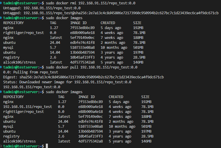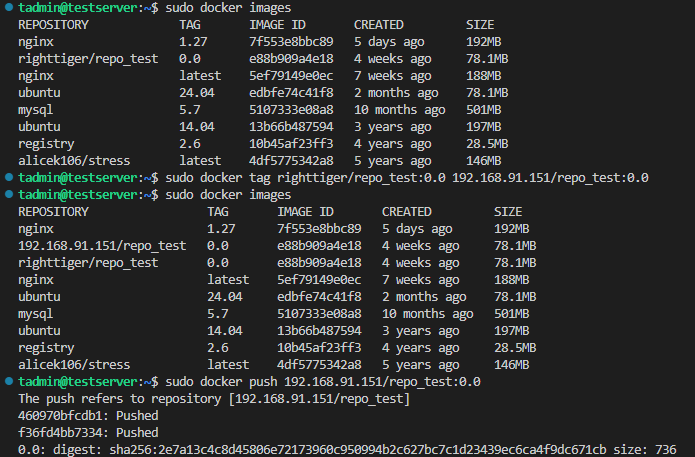 sudo docker tag righttiger/repo_test:0.0 192.168.91.151/repo_test:0.0