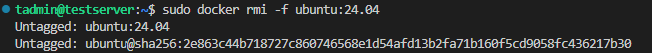 지금까지 docker 이미지는 layer 형태로 추가 및 변경 정보들을 저장한다는 것을 알아보았습니다. 이는 이미지들 간의 의존성이 발생한다는 것을 의미하며, 의존성이 있는 경우 이미지가 삭제될 경우 이슈가 발생할 수 있기에 삭제 시에 어떤 방식으로 작동하는지를 알고 있는 것이 중요합니다. 이에 대해 보다 명확하게 알아보기 위해 docker rmi 명령어로 ubuntu:24.04 이미지를 삭제해 보았습니다.