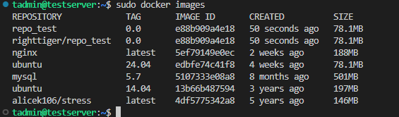 sudo docker tag testimage:0.0 righttiger/repo_test:0.0