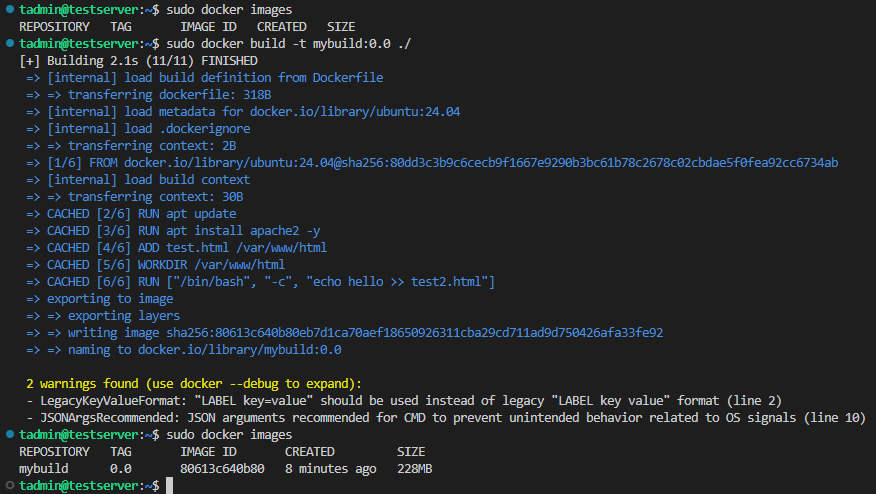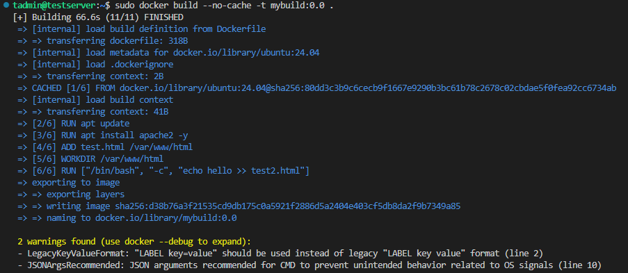 sudo docker build --no-cache -t mybuild:0.0 .