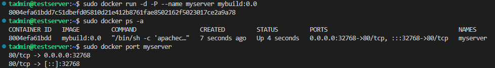 sudo docker run -d -P --name myserver mybuild:0.0